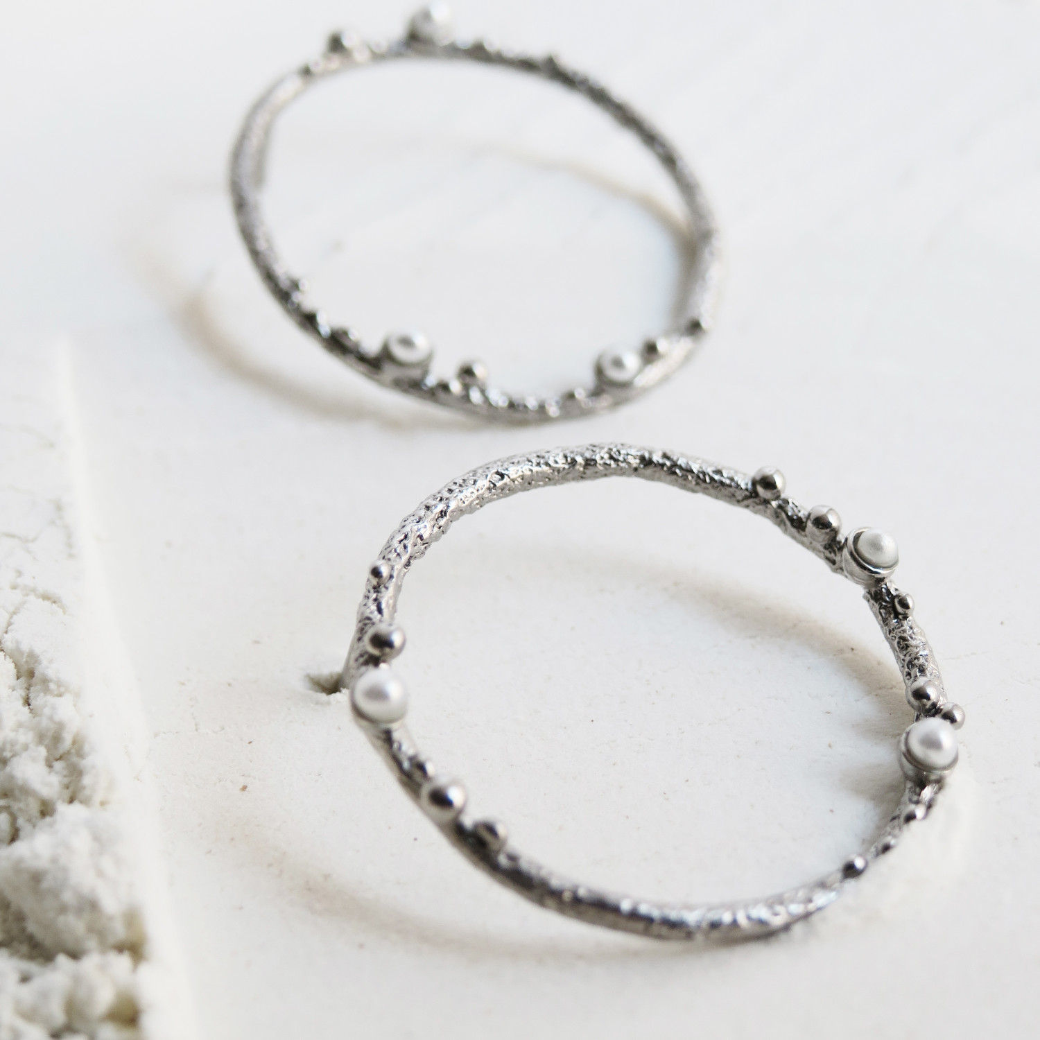 Guspira apvalūs auskarai – tarsi šviesos kibirkštys, pagautos tyroje, sidabrinėje šviesoje